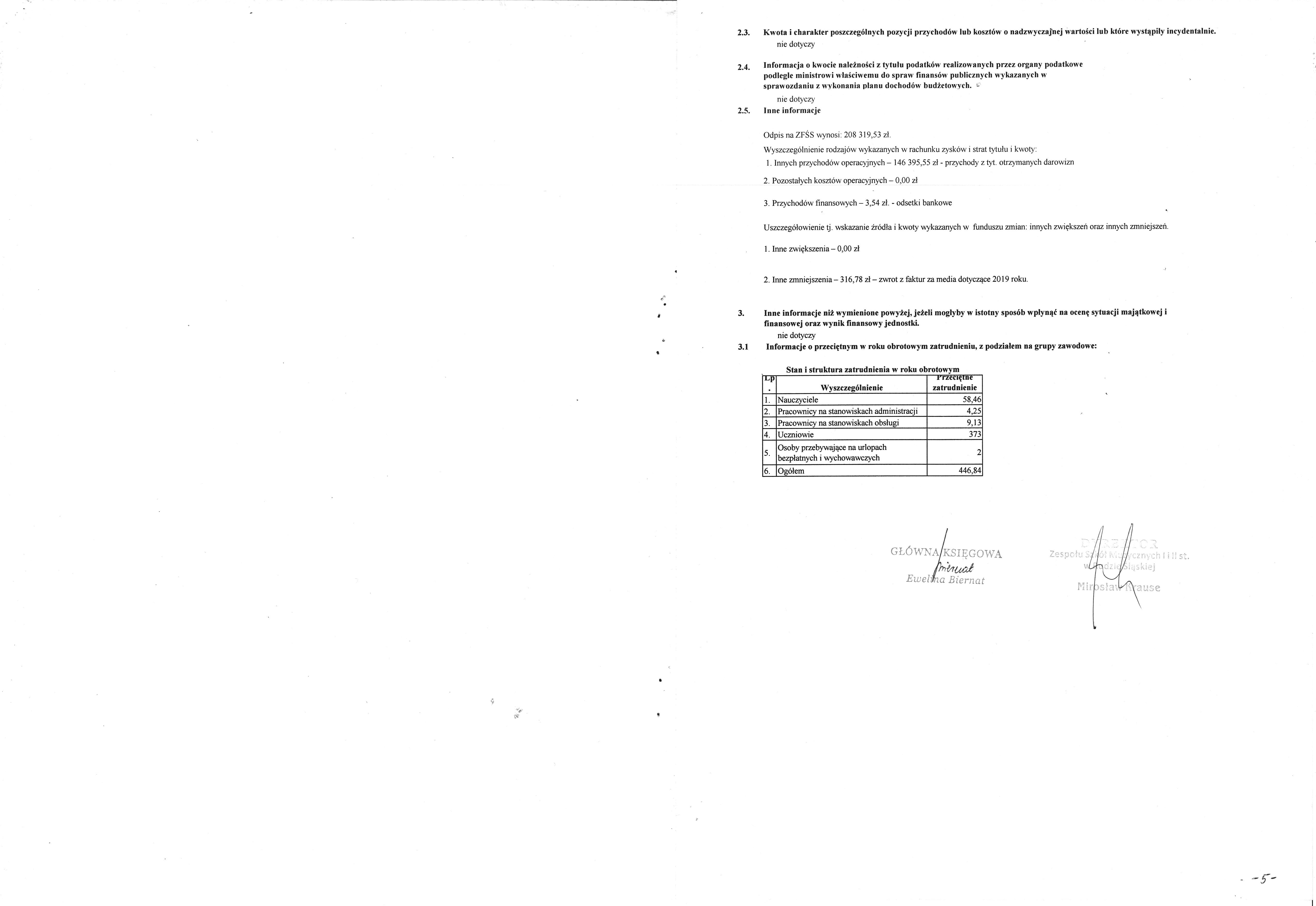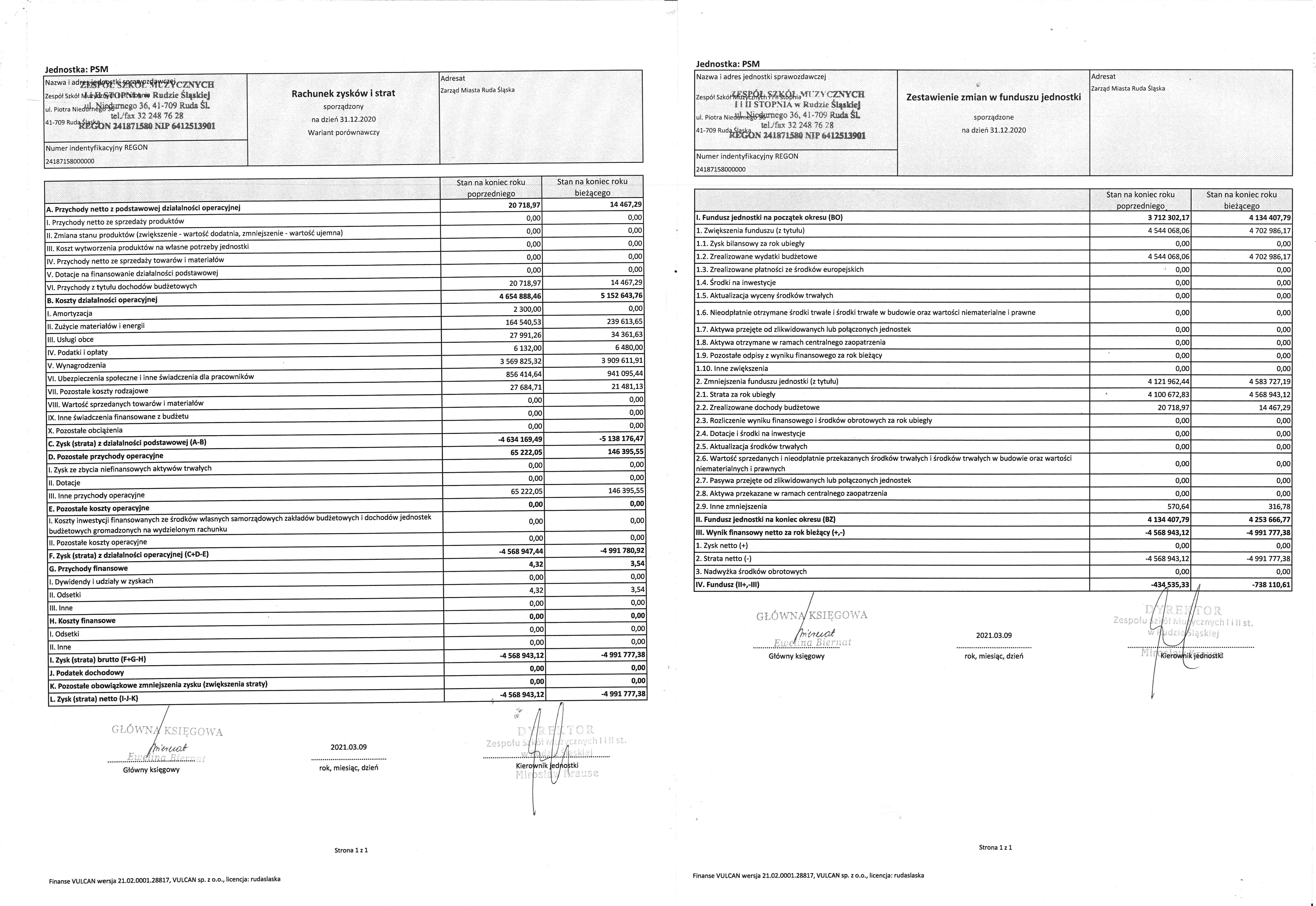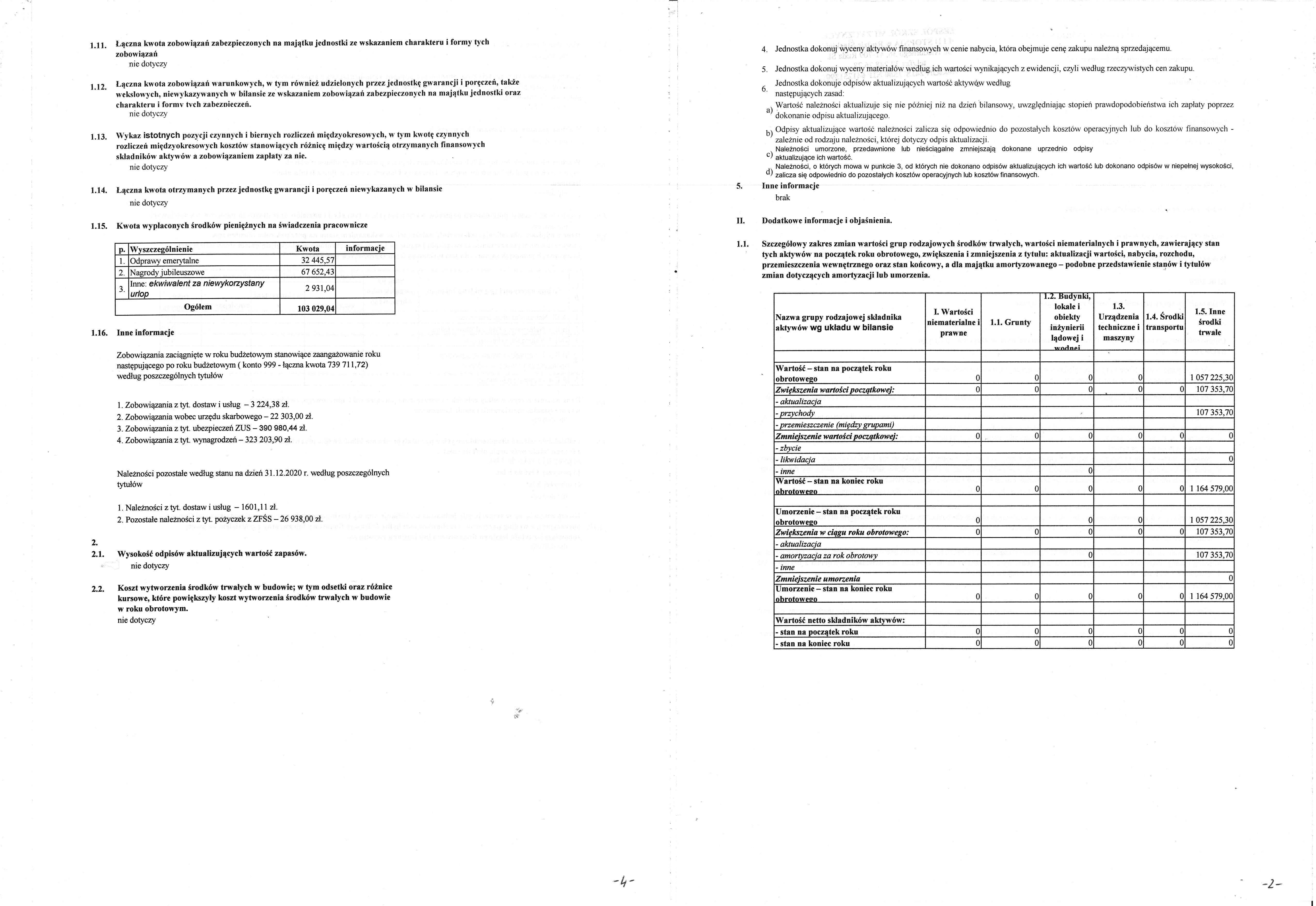 Sprawozdanie finansowe za 2020 rokUtworzono: poniedziałek, 10 maj 2021 21:05 | Poprawiono: poniedziałek, 10 maj 2021 21:07 | Opublikowano: poniedziałek, 10 maj 2021 21:05 | Ewelina Biernat | Drukuj | E-mail | Odsłony: 1451 Sprawozdanie finansowe za 2019 rok (...) Załączniki: bilanse.jpg[ ]2028 kB2021-05-10 21:06 dodatkowa informacja str2_4.jpg[ ]1209 kB2021-05-10 21:06 dodatkowa informacja str5.jpg[ ]565 kB2021-05-10 21:07 fundusz jednostki_rachunek zysków i strat.jpg[ ]2171 kB2021-05-10 21:07 informacja dodatkowa str1_3.jpg[ ]1206 kB2021-05-10 21:07